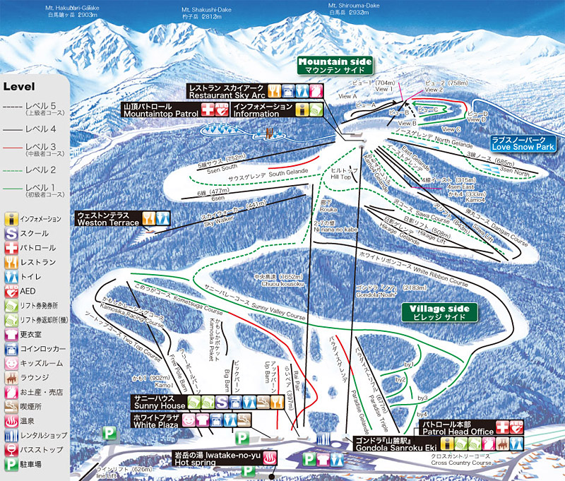 ゆったりした山容を生かして開かれた小振りなゲレンデは、硬軟取り揃えた“あわせ技”が持ち味。 北アルプス白馬三山の素晴らしい眺望と360度の大展望は迫力満点。